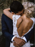 Ivory Lace Mermaid Cap Sleeves Long Wedding Dresses, Bridal Dresses, SW411