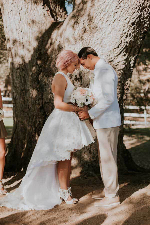 Ivory Lace Two Piece High-Low Short Wedding Dresses, Small Train Bridal Dress, SW388