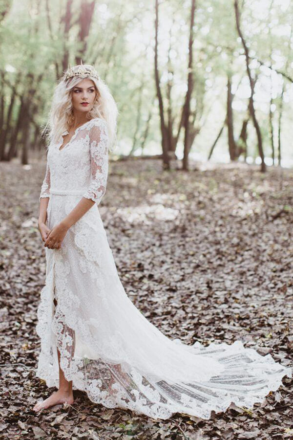 White Tulle Lace Long Sleeves Beach Wedding Dresses, Bridal Gowns, SW405
